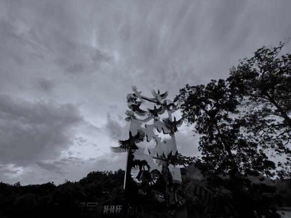 aluminum metal framework that artfully mimics the random and ethereal appearance of clouds when viewed from the road, creating a captivating illusion of floating elegance