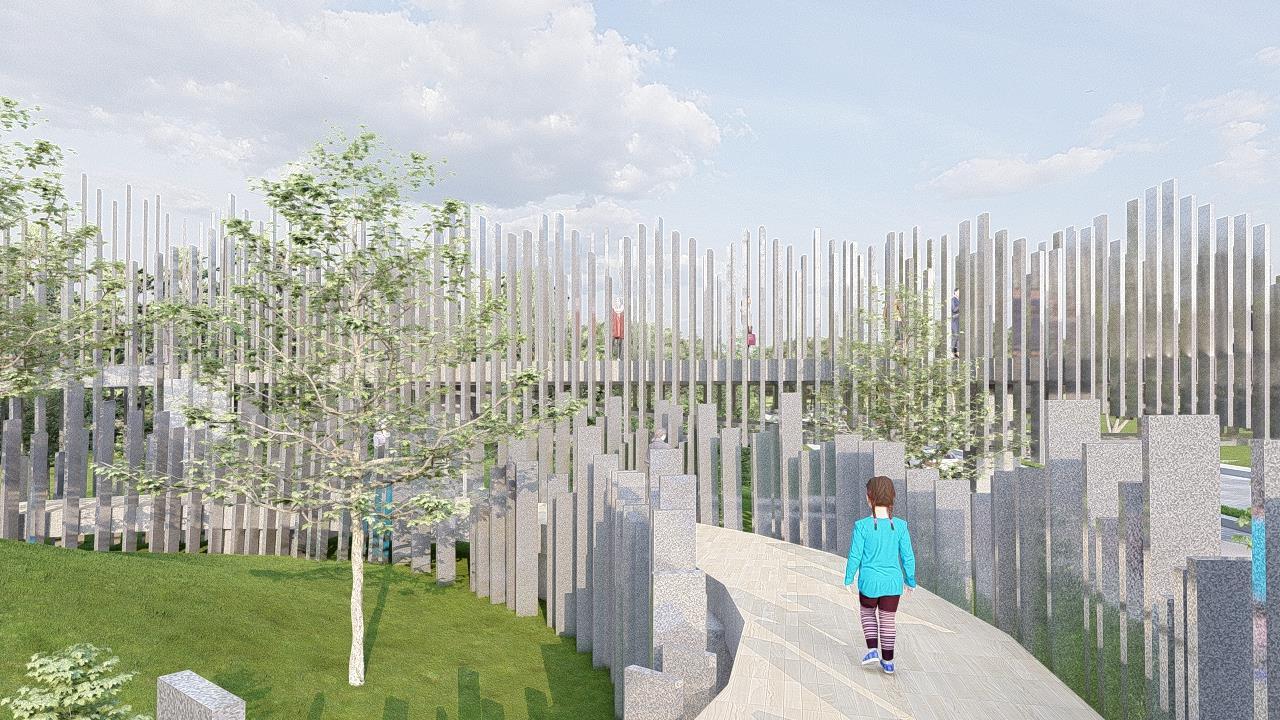 The architectural design for the park's pedestrian bridge follows a traditional and ordinary style, making it an unassuming but functional addition to the urban landscape