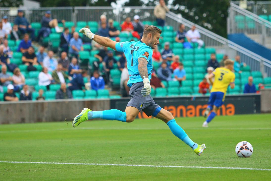 5/ Laurie Walker in full flight taking a goal kick, great body shape and both feet off the ground makes it a nice photograph, nicely framed and un-edited , just what I like.