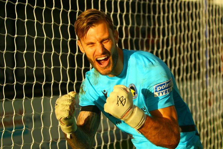 At full Time after Laurie had acknowledged the crowd and in particular the Barnet faithful, who didn’t really give him a hard time, he went into his goal to retrieve his bits and pieces, and I got him to celebrate not only a win but the defeat of his former employers, this is where a good photographer player relationship pays off. I sent it up to the media team with the note “Stop Press” but it was too late.