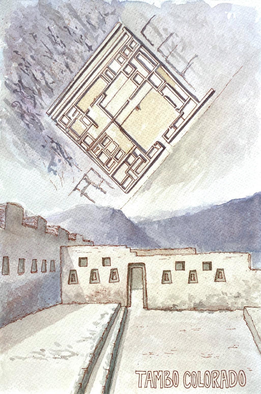 Se dibujó la planta y una perspectiva con un punto de fuga del asentamiento inca “Tambo colorado” en Pisco.