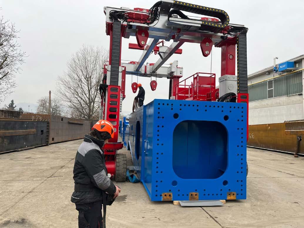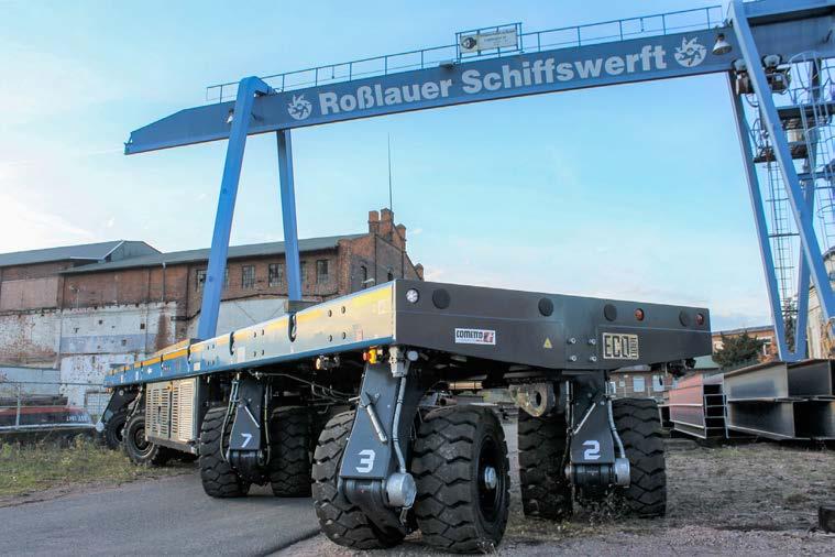 L’Eco1000, modulo SPMT di Cometto tra i più apprezzati dagli attori della grande movimentazione industriale, è approdato al cantiere navale tedesco di Rosslau (RSW), in versione a quattro assi, per movimentare componenti d’acciaio del peso fino alle 160 tonnellate all’interno dello stabilimento. “Avevamo l’esigenza di sostituire i vecchi mezzi di trasporto e movimentazione all’interno della fabbrica – spiega Peter Talaska, amministratore delegato del cantiere – Dopo aver effettuato una ricerca di mercato, il modulo Cometto Eco1000 a quattro assi, nella variante a telaio lungo ha soddisfatto esattamente le nostre esigenze”. La scelta opportuna è confermata dal direttore di produzione Jonas Hohmann, che definisce l’Eco1000 come “un pezzo importante del puzzle per la futura logistica dell’impianto”.