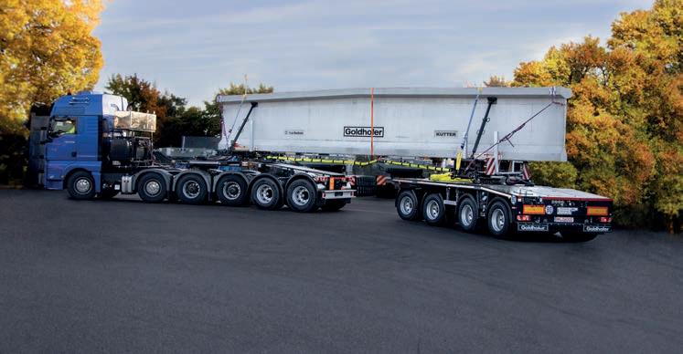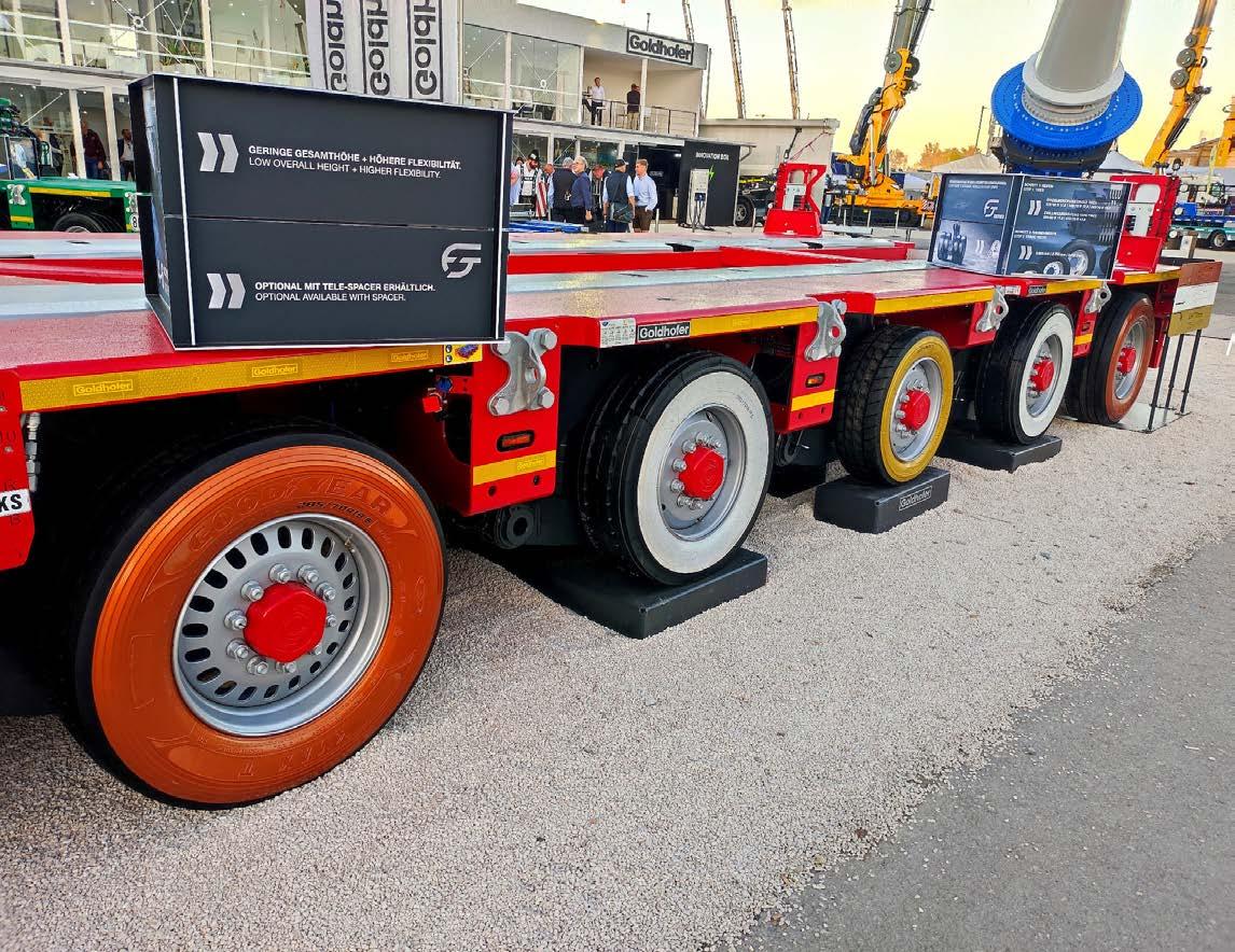 Da parte delle piccole e medie imprese del settore, grande risalto hanno ottenuto anche i veicoli Goldhofer del segmento a basso carico utile come i moduli Trailstar e Stepstar Z, nuovi membri della famiglia Starline. Un baricentro ottimizzato, un tonnellaggio di portata lorda ridotto e un sistema di ancoraggio intelligente si traducono in carichi utili elevati, tempi di installazione brevi e cicli di trasporto rapidi. Come ulteriore attrazione, i veicoli esposti erano dotati del modello di pianale alleggerito Traffideck Go, che combina una bassa usura con un elevato coefficiente di attrito. Grande interesse è stato mostrato anche per i pneumatici a