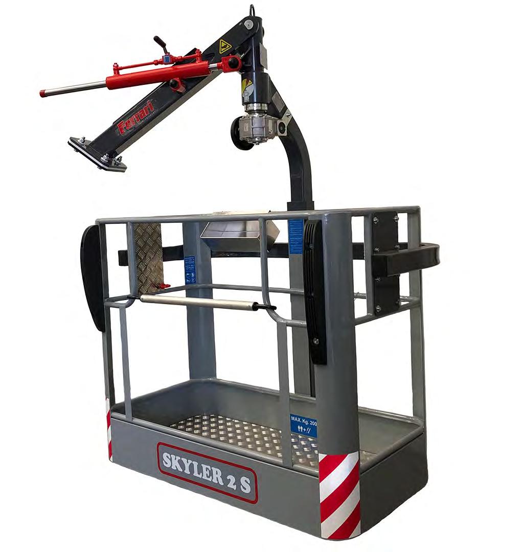 The Ferrari International Personnel Baskets SKYLER series provides baskets for two operators, in steel, aluminium and fiberglass, with possibility to regulate the arm in height.