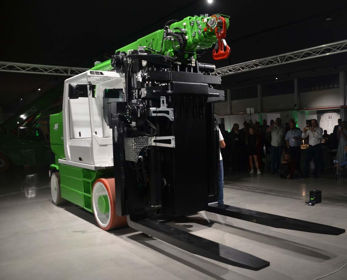 vicino al baricentro, portandolo molto in alto”, come ci spiega Matteo Inzani, responsabile nuovi progetti per JMG. Il pensiero creativo va subito alle dinami che di un carrello elevatore, ma l’idea primigenia, la ricerca e sviluppo JMG va a declinarla in un modello di gru comple tamente nuovo. “Progettisti, designer e ingegneri hanno costituito uno staff coeso per lo sviluppo della macchina, curan done anche l’aspetto legislativo in rela zione alla normativa in vigore in Europa per i carrelli elevatori (una disciplina che l’MC250.09FL, pur nella sua differenza tipologica da questa categoria di solle vamento, deve comunque rispettare) - ri marca Matteo Inzani - La base di parten za della macchina è costituita dai valori tecnologici comuni a tutte le macchine del la nostra gamma, dalla trazione anteriore alla propulsione elettrica, contemplando