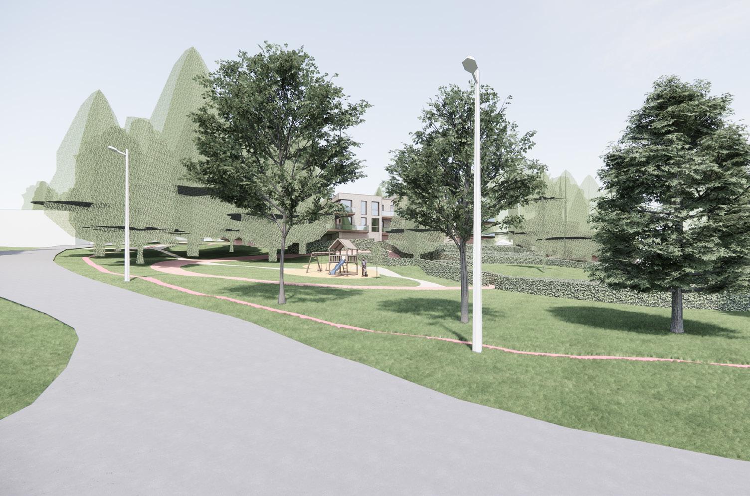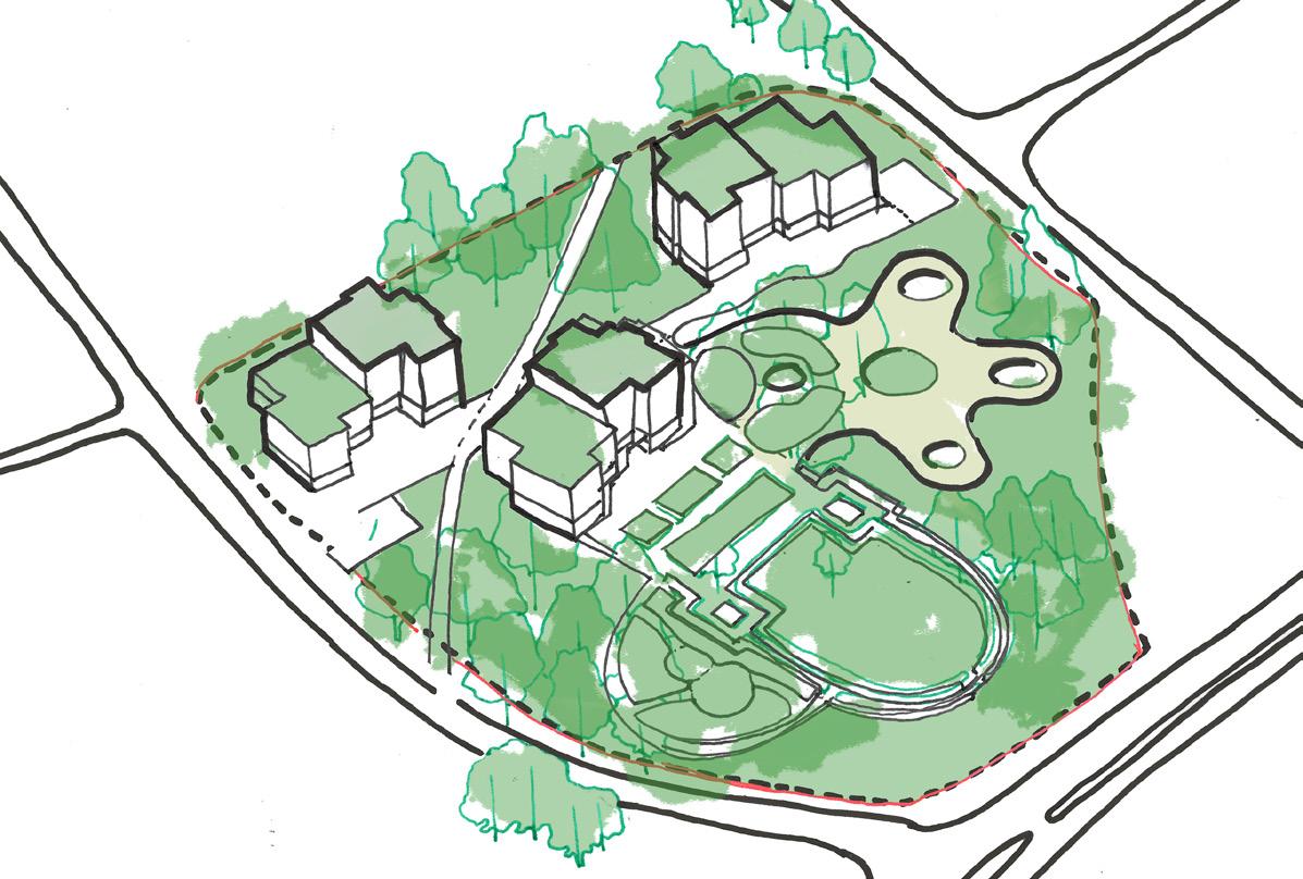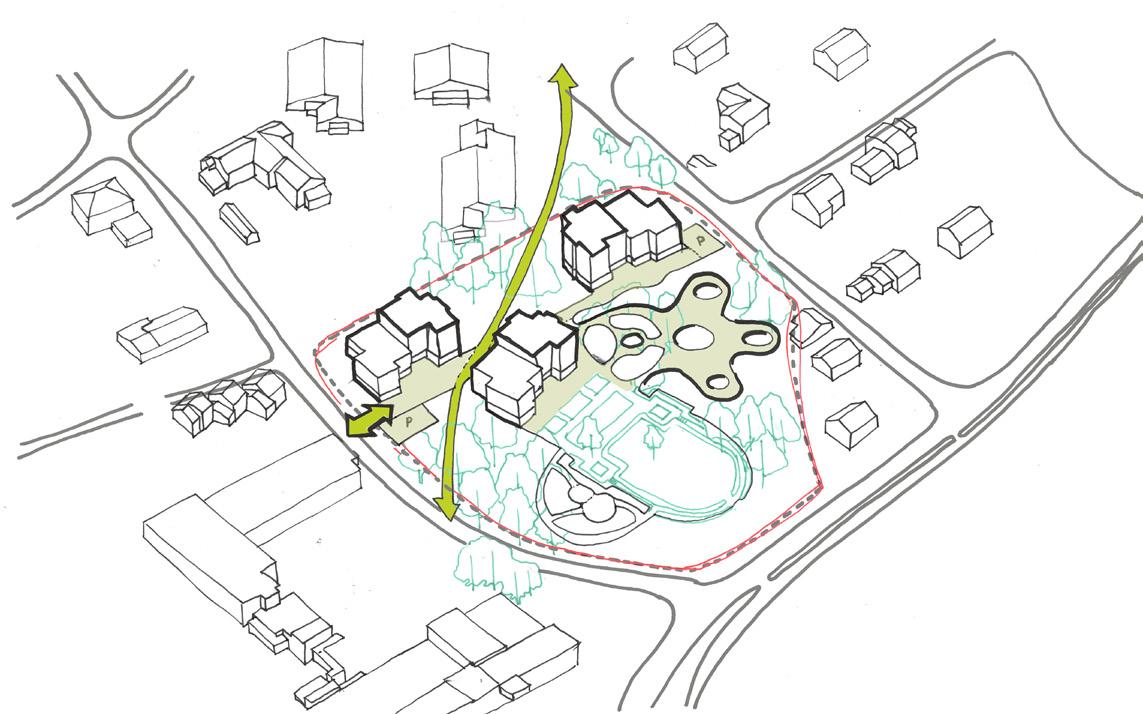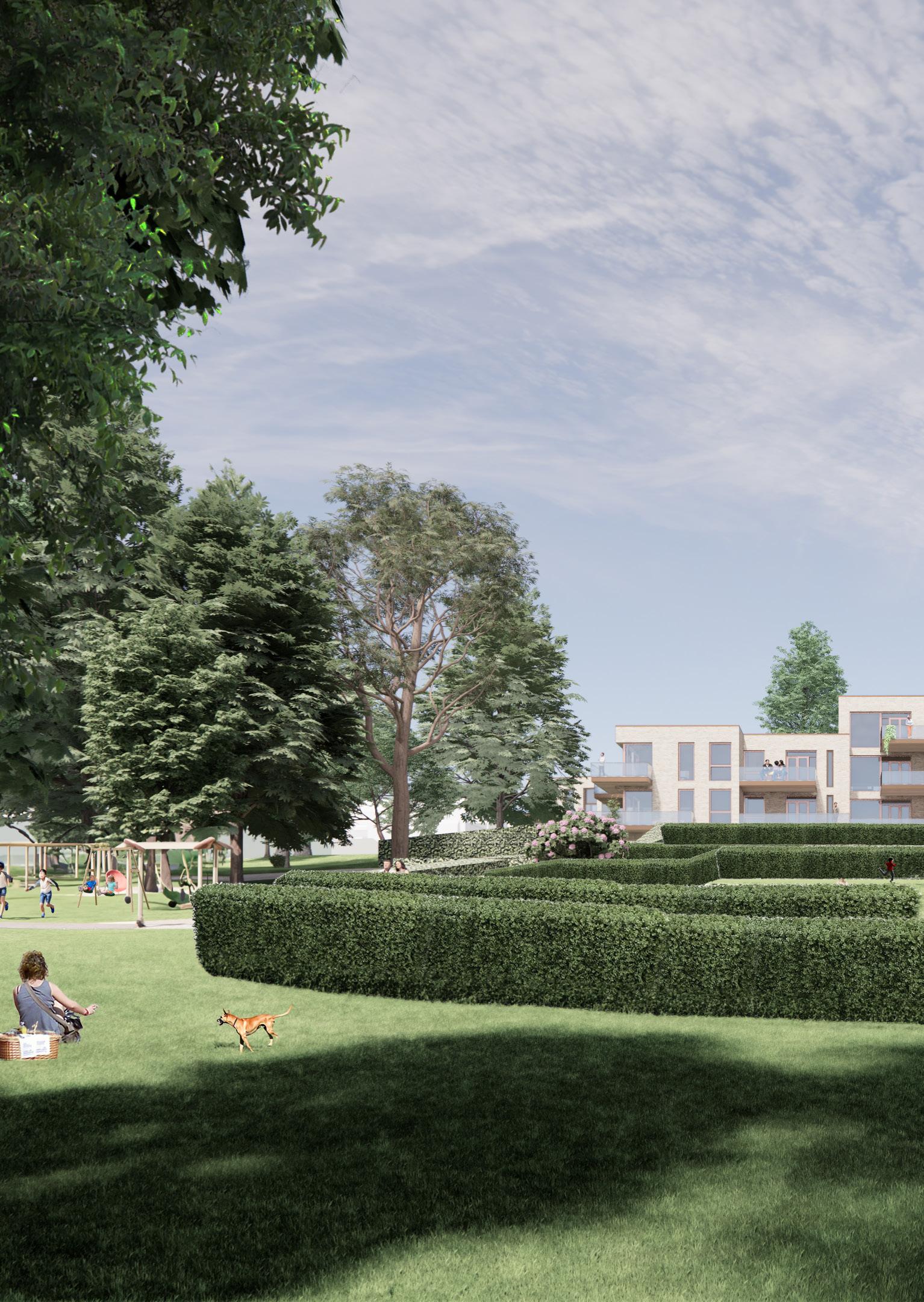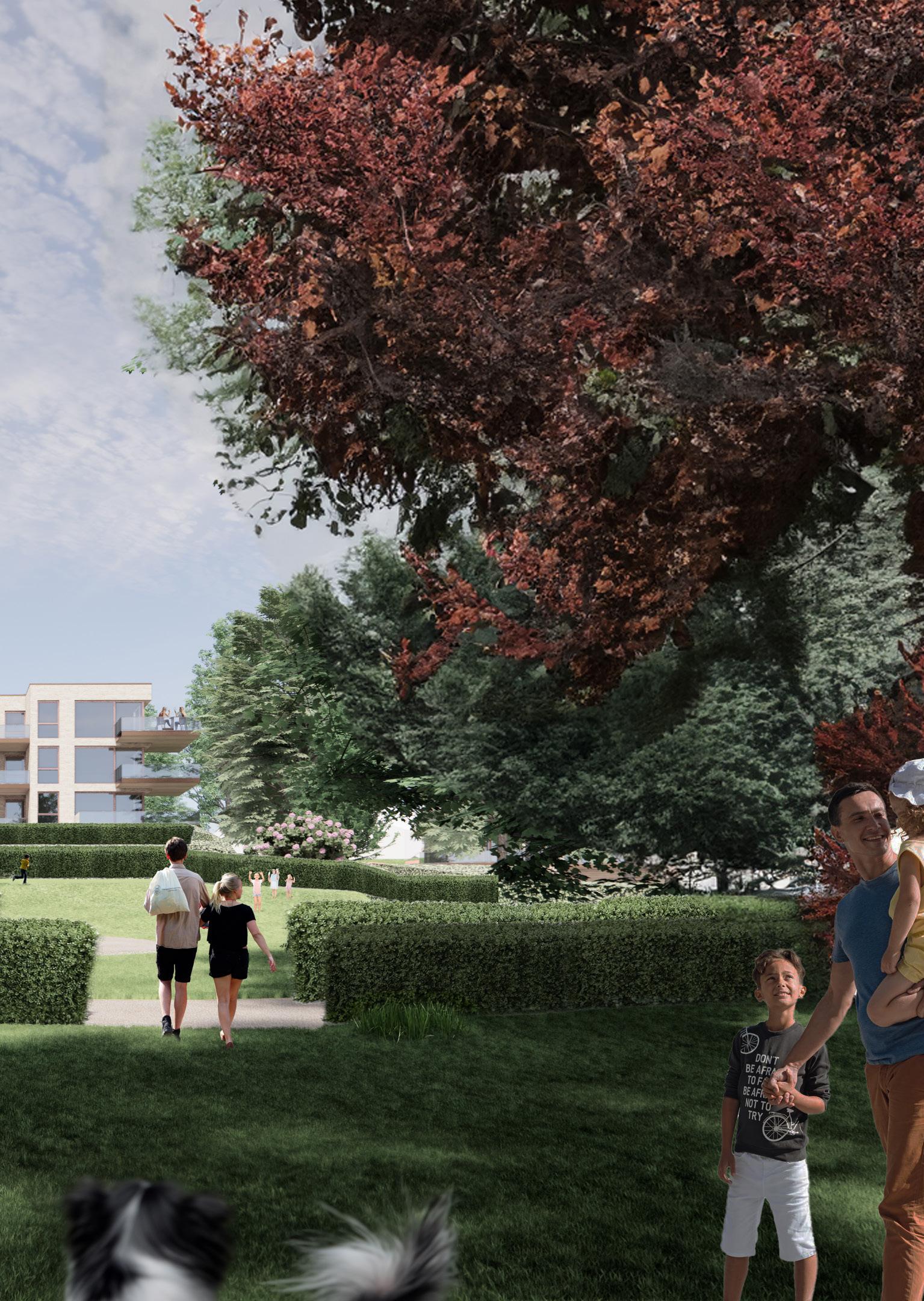• Boliger med plass til familier vil skape aktivitet i parkområdet, samt måten parken skal plasseres og planlegges er målsettingen at den skal være innbydende og tilgjengelig for alle.