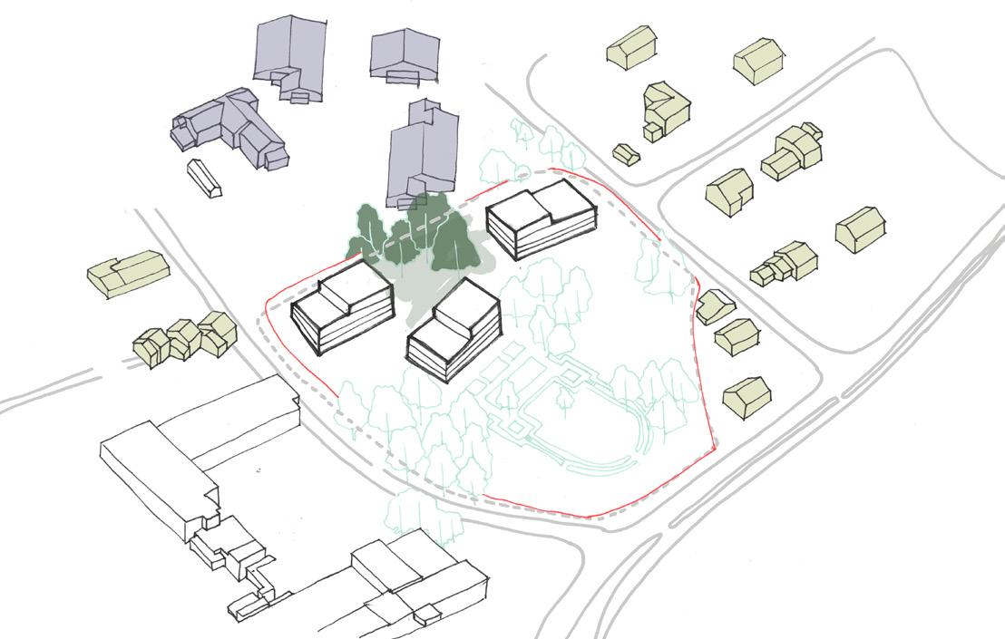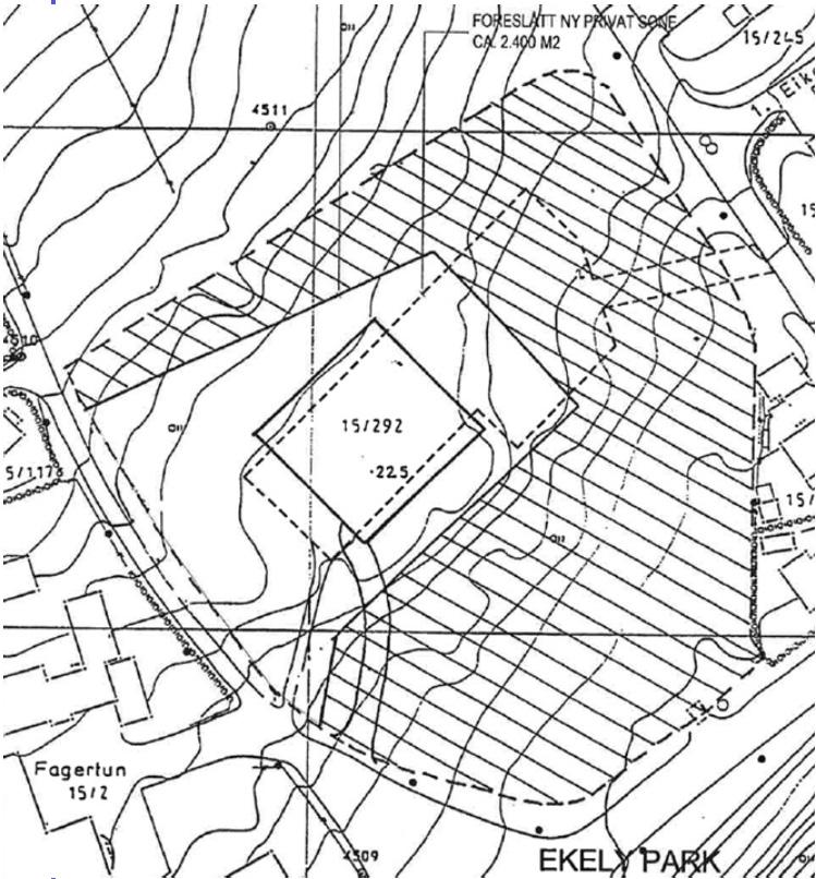 Bakgrunnen for dette skisseprosjektet er at området i dag regulert med formål: Industri/næring, noe vi mener avviker i høy grad fra stedets historie. En gang i tiden var det Villa-Ekely som rammet inn det flotte parkanlegget. Hvis dette erstattes med et industri-bygg, vil ikke en tilbakeføring av parken henge på grep med den historiske sammenheng. Det vil også avvike mye på områdets helhetlige bygningsstruktur og potensielt føre til mer støy og tung trafikk inn i et eksisterende boligområde.