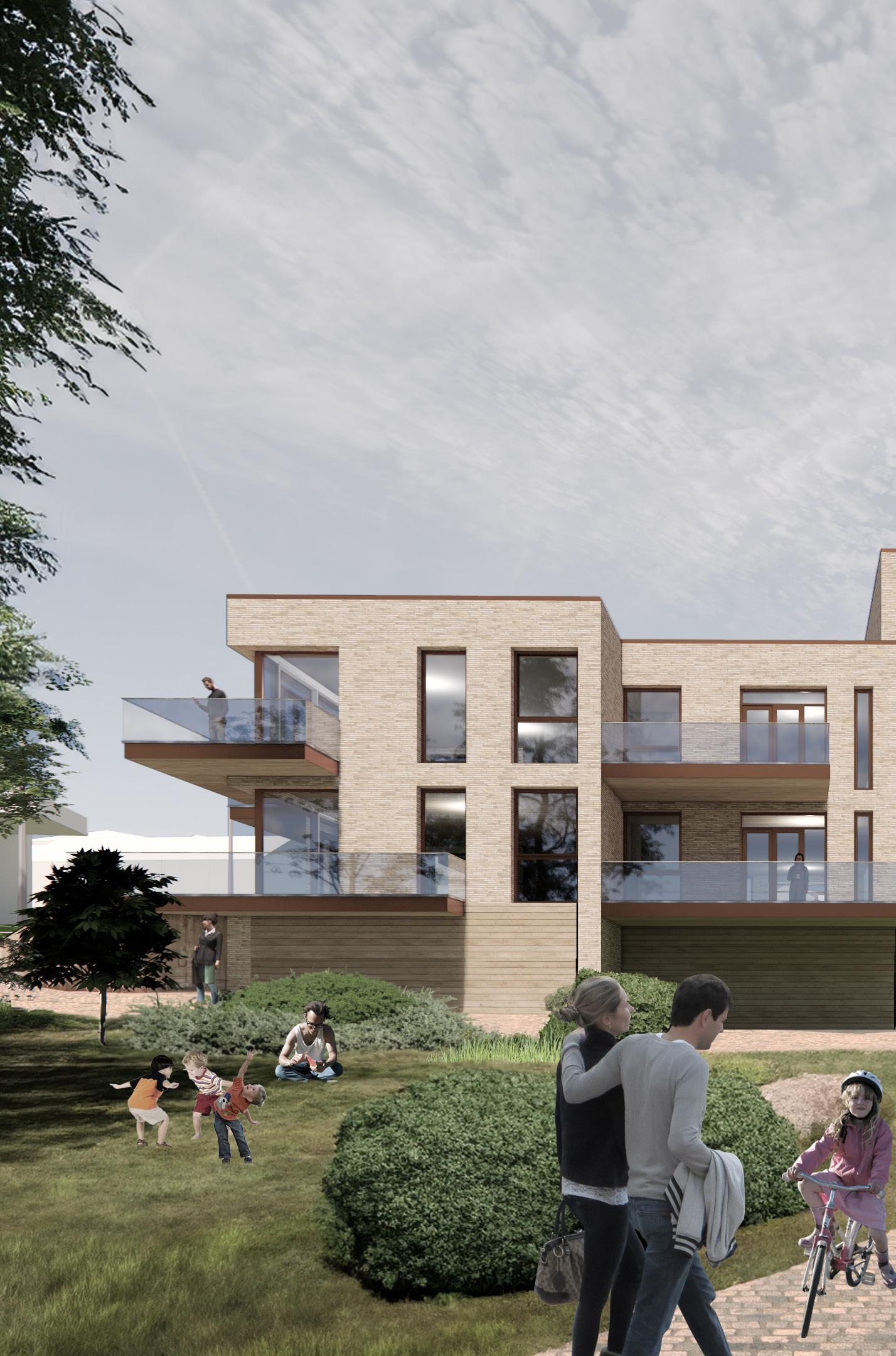 Med en fasade i lys sekkeskurt murstein skapes en jevn overflate med klar tekstur, som komplimenterer husene i nabolaget. En signatur for bygget er et unikt og spektakulært lysatrium sentralt i bygningskroppen, som vil gi dagslys og en variasjon av lys til de indre delene av boligene det grenser mot.