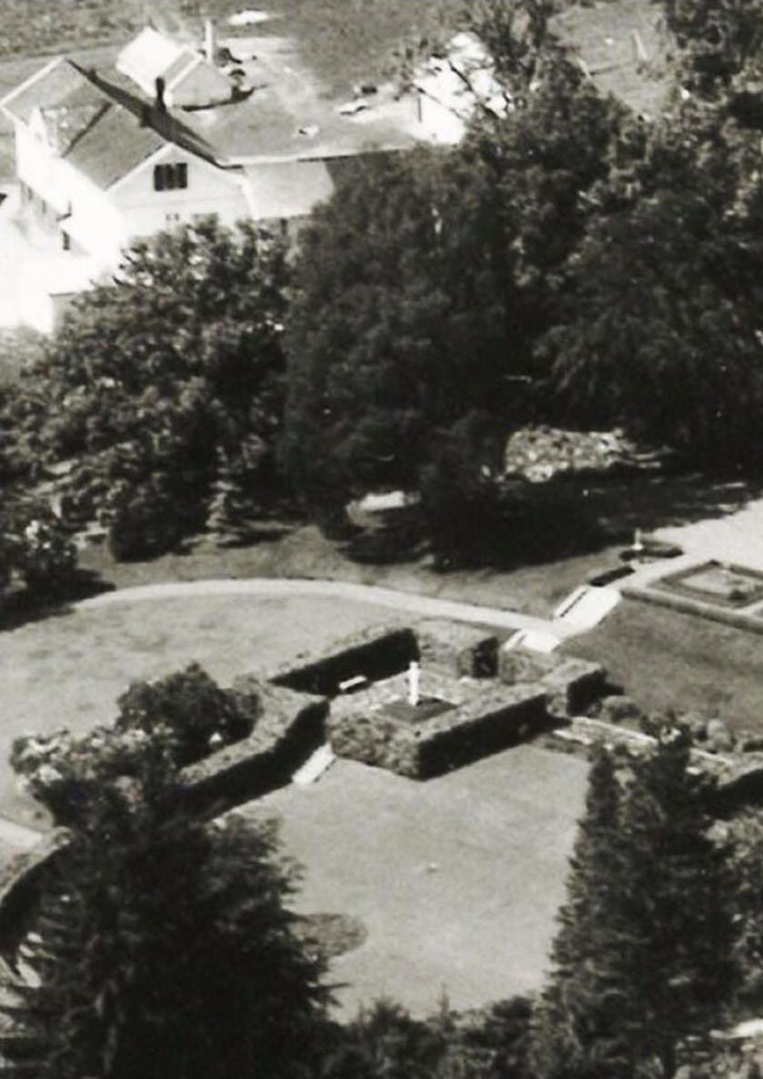 Terrassen lå med utsikt over hagen mot Drammensfjorden og var formet som et ornamentalt parterre med rosebed, fuksia og formklipt buksbom».