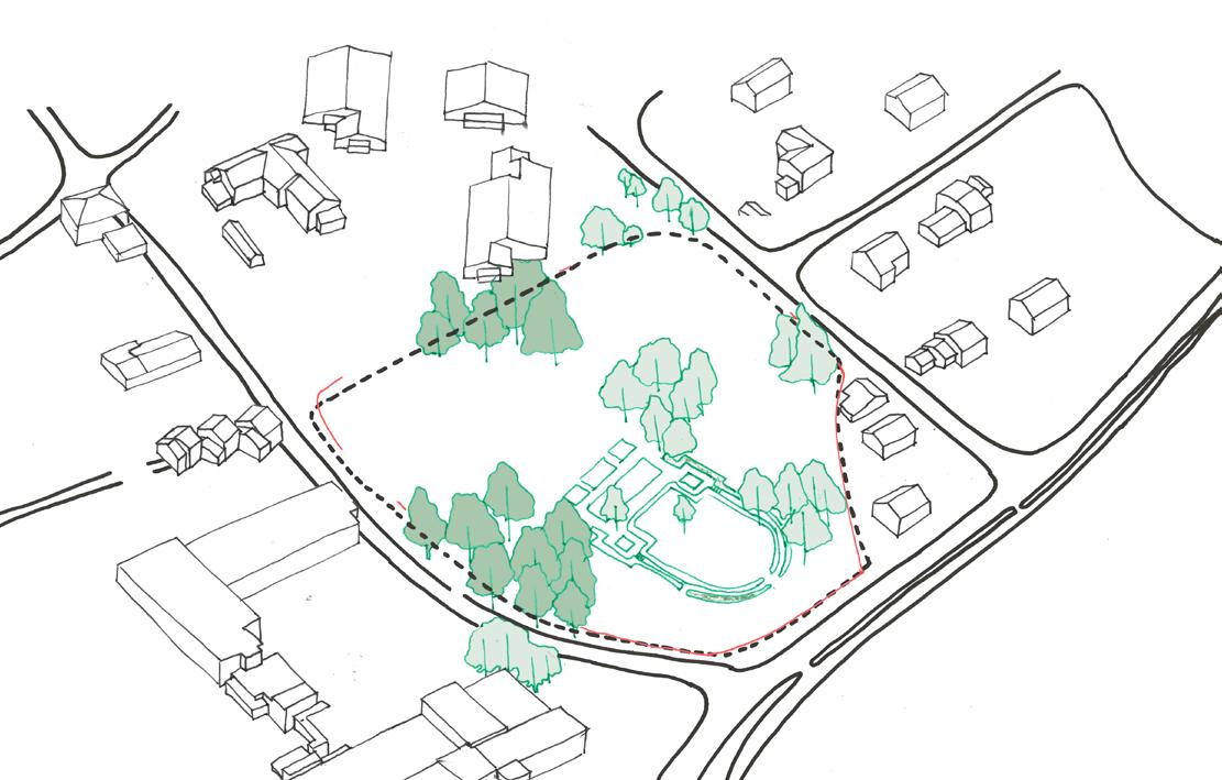 Derfor har vi med dette skisseprosjektet skissert og redgjort for et forslag på hva vi anbefalerburde være tomtens formål, fordeling av privat og offentlige områder, samt bevaring og tilbakeføring av hage.