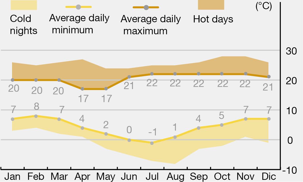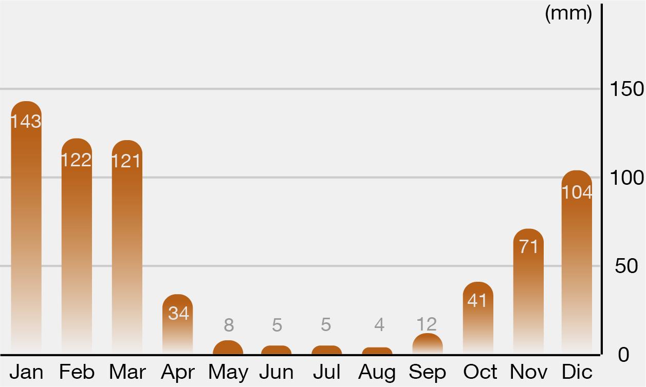 It is characterized by its average annual precipitation of 700 millimeters and average annual temperatures of 12°C.
