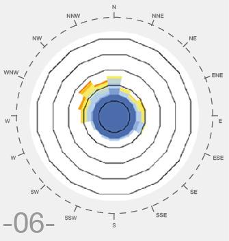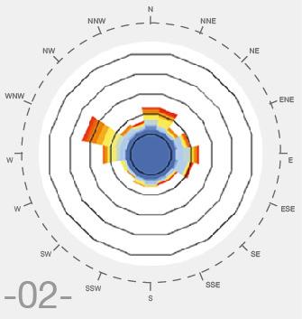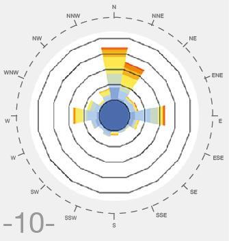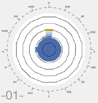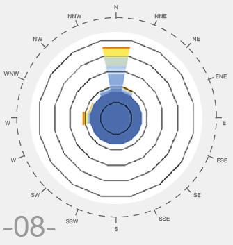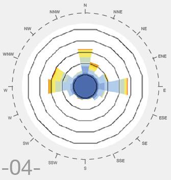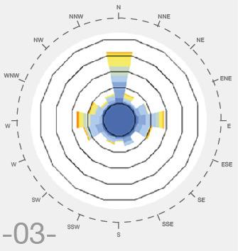The entry of winds from the north-east and north-west facades must be controlled to avoid cooling of the buildings. Winds from the north are moderate and regular, which causes cooling of the buildings that must be controlled.