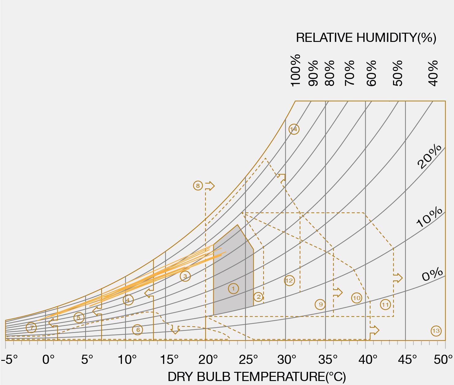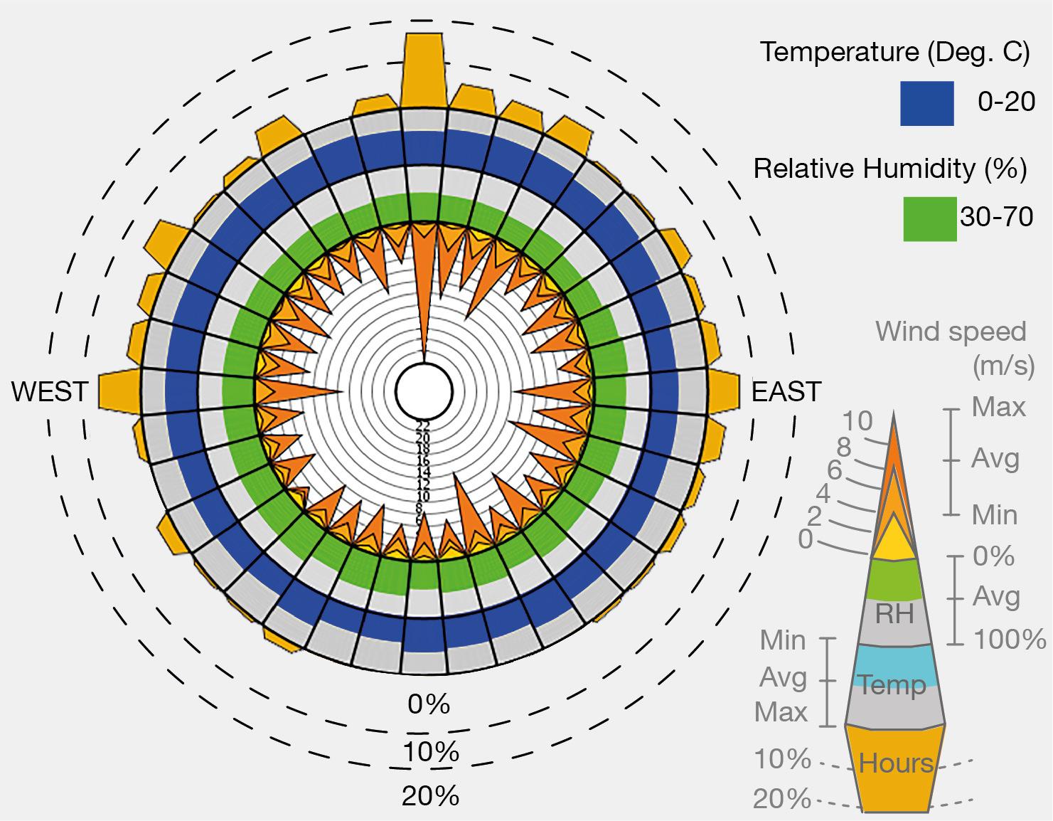 The solar exposure on the east and west facades can be used to promote comfort, by means of a good choice of materials.
