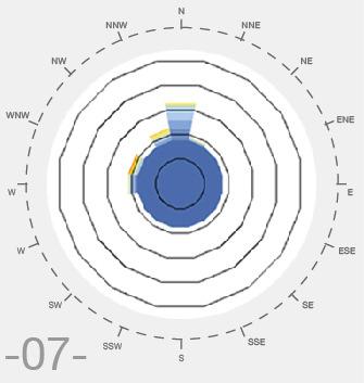 Greater solar exposure on the north façade. During 7 months (March, April, May, June, July, August and September).