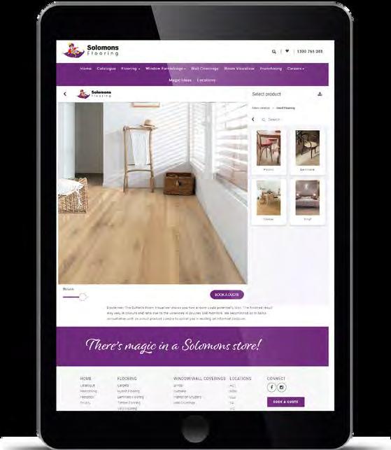 SEE HUNDREDS OF DIFFERENT FLOORING OPTIONS CHOOSEONEOFOURROOMS ORUPLOADYOUROWN CLICK HERE TO TRY IT OUT T&Cs: Advertised Merchandise Policy. All items in the catalogue are available at the advertised price while stocks last. We reserve the right to correct any errors or misprints. Prices may vary slightly in some country areas due to freight costs. All carpets include installation on underlay except manufacturers clearance items. Floor preparation, removal of furniture and rubbish & other sundry costs incurs an extra charge. All prices include GST. We accept no responsibility if goods are unavailable due to circumstances beyond our control. Online catalogue prices are valid to Jun 30, 2024. Prices available at participating stores only. Some products may not be available in all stores. Colours and styles are as close as printing processes and individual monitor/screens will allow. Pictures are indicative only. A visit to a Solomons Showroom will enhance the customers’ appreciation. Comeona magiccarpetride. ENQUIRE NOW FLOORSTORES.COM.AU CLICKHERETOFINDOUTMORE •LowEntryCost •GreatWork/LifeBalance •NoStockHoldingsRequired •OngoingSupport Franchisesavailable Australiawide. SULTAN’S ROOM VISUALISER
