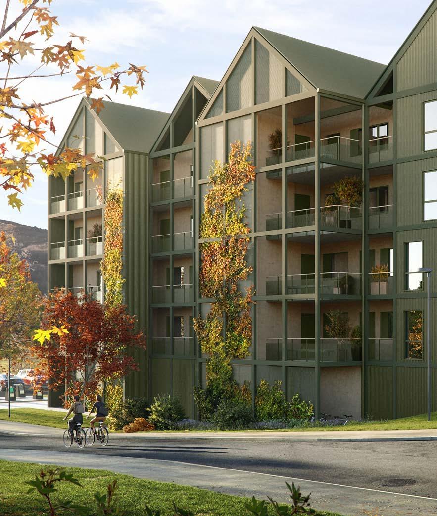 Som helhet er tanken at bygget skal stå som en særlig introduksjon ved ankomsten til boligfeltet. Med det «grønne» uttrykket og den imøtekommende og åpne fasaden er tanken at bygget skal fremstå behagelig og innbydende for både beboere og offentligheten.