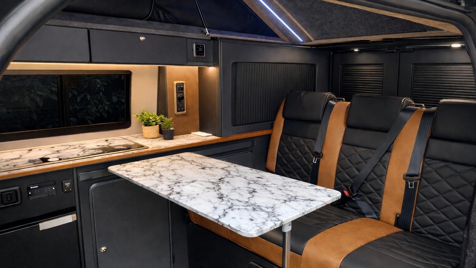 This conversion seats five people and provides sleeping space for four, thanks to the pop-top bed.
