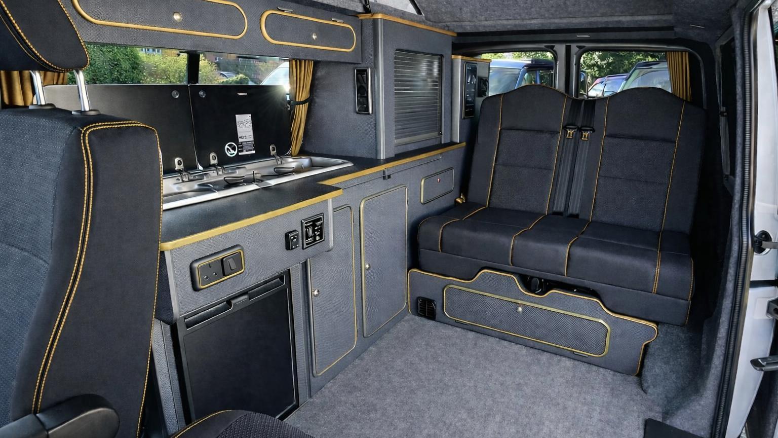 Our WINDWARD camper conversion layout features a rear kitchen area, providing a more flexible camping setup. There's even space for a fitted flush toilet!
