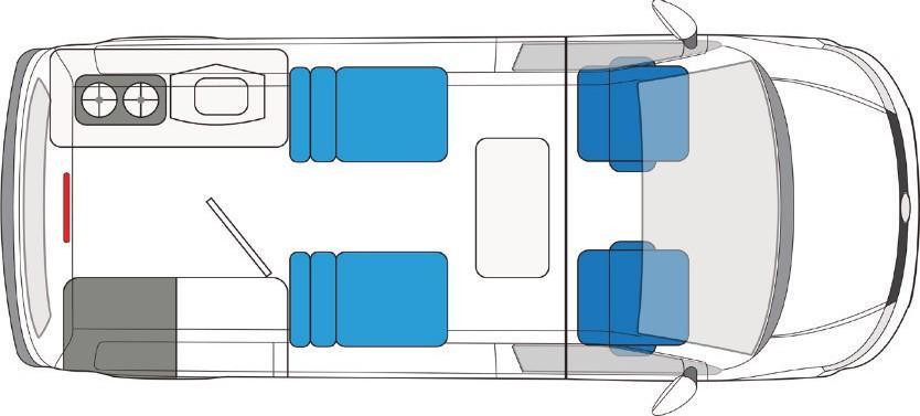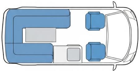 Crafter/ Sprinter campervan conversion layout boast a larger fixed or bench beds, this is an ideal layout for those wanting extra seating space available in a 2or 4 berth, also with or without shower/wc.