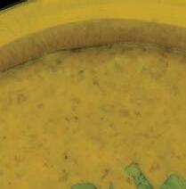 5. Meng de pompoenpuree, de kokosroom, het citroensap en alle groenten en voeg toe aan de geroosterde kruiden en tomatenblokjes. Verwarm door tot serveertemperatuur en serveer in een kom.