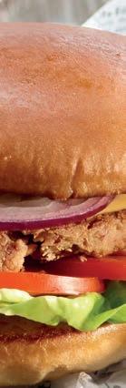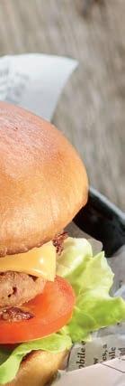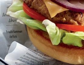 7. Dresseer het geheel op het hamburgerbroodje en serveer op vetvrij papier.