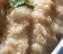 5. Meng de bloemkoolpuree met de crème fraîche en mierikswortel. Verwarm de puree en breng op smaak met peper en zout.