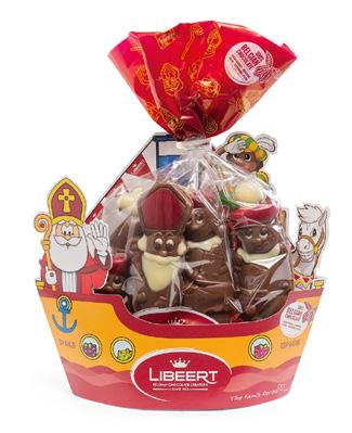 150 g : 1 saint-nicolas 60 g, 3 sucettes, 4 pièces de monnaie en chocolat, 3 bonbons aux fruits, 2 chewy sticks (emballage : 8x80x30 cm) 106107 pièce par 16