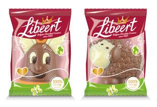 LIBEERT Paaseieren melkchocolade ind. 15 g x 100 126813 stuk per doos van 100: 4 verschillende figuren
