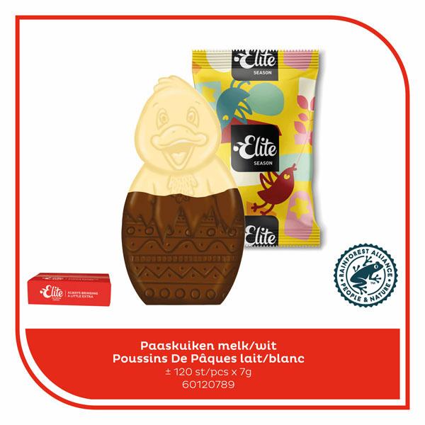 Petits chocolats pour le café en forme de poussin de Pâques lait/blanc