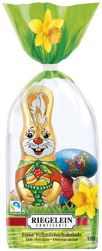 Assortiment de Pâques au chocolat au lait (1 lapin de 60 g et 4 œufs creux de 10 g) 100 g 125187 sachet par 20