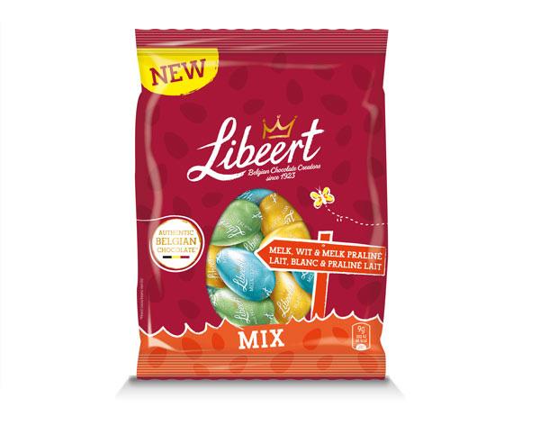 LIBEERT Sachet gourmand d'œufs de Pâques au chocolat au lait/blanc/noir