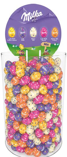 Assortiment d'œufs de Pâques au chocolat au lait, blanc et au lait pralinés (30 pièces) 270 g 126812 pièce par 36