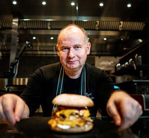 CHANGE BURGER? Naar aanleiding van de opening van z’n eerste vegan restaurant PLANT|n in het Sapphire hotel Antwerpen, heeft 2 sterrenchef Bart De Pooter drie ‘‘cheesy change burgers’’ ontwikkeld.