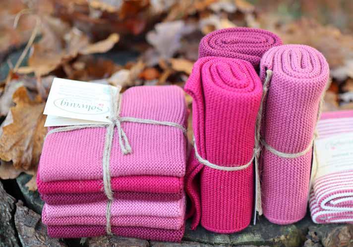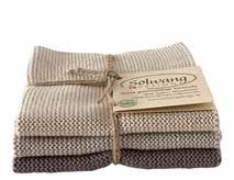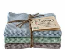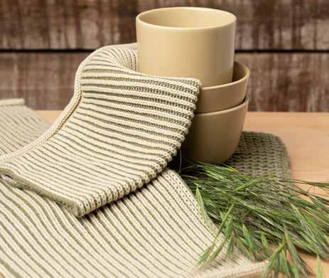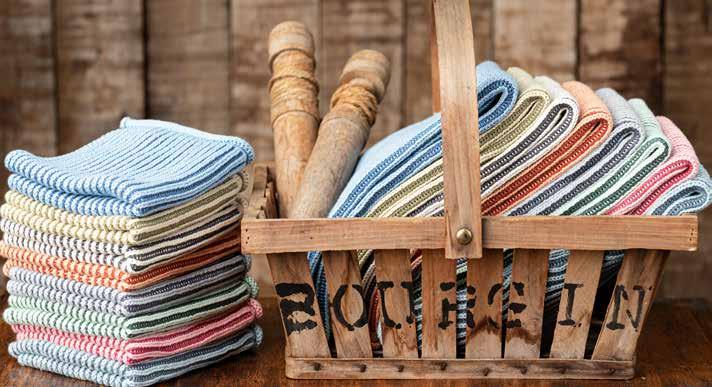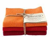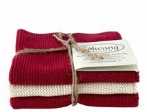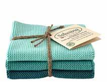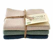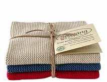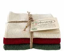 We have incorporated Christmas into this collection and have created both a brandnew Christmas bundle in the 3-pack dishcloth set as well as two new striped cloths in deep and beautiful red and green colors. They are all a perfect match to the new woven tea towel in 100% organic cotton. See the items on page 23.