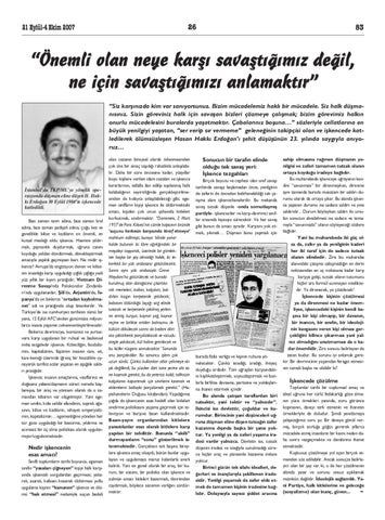 “Önemli olan neye karflfl›› savaflfltt›¤›m›z de¤il, ne için savaflfltt›¤›m›z› anlamakt›r” “Siz karfl›n›zda kim var san›yorsunuz. Bizim mücadelemiz hakl› bir mücadele. Siz halk düflman›s›n›z. Sizin göreviniz halk için savaflan bizleri çözmeye çal›flmak; bizim görevimiz halk›n onurlu mücadelesini buralarda yaflatmakt›r. Çabalar›n›z bofluna…” sözleriyle cellatlar›na en büyük yenilgiyi yaflatan, “ser verip s›r vermeme” gelene¤inin takipçisi olan ve iflkencede katledilerek ölümsüzleflen Hasan Hakk› Erdo¤an’› flehit düflüflünün 23. y›l›nda sayg›yla an›yoruz…
