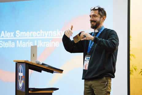 Alex Smerechynskyy er katolsk præst og kaldet til at arbejde i Stella Maris, Ukraine. Egentlig kommer han fra det vestlige Ukraine – langt fra havet. I 1999 spurgte nogle fra Odessa, der i generationer havde sejlet som kaptajner, om han ville med på havnen. Med ombord og møde søfolk, fordi de mente, det ville være godt for søfolkene med noget support. Han var med et stykke tid, og efter et par år sendte hans kirke ham til en tjeneste blandt søfolk med udgangspunkt i Odessa havn, hvor de nu efterhånden er et team, der tjener søfolkene. Det er en svær tid at arbejde i, fordi der kan være fare. Og det påvirker den enkelte. Alex har lagt mærke til, at søfolk fra Syrien fx ikke er bange. Måske fordi de har været vant til krig, ræsonnerer han sig frem til. Ingen af kvinderne fra teamet går ombord på skibe, som kommer fra muslimske lande. Sikkerhed er i højsædet.