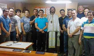 På det første skib blev de budt varmt velkommen af en gruppe filippinske søfolk. Samtalen flød let, og der var god tid til at snakke om livet til søs. Da besøget rundede af, fik de lov at bede sammen med én af søfolkene, som var bekymret for situationen derhjemme.