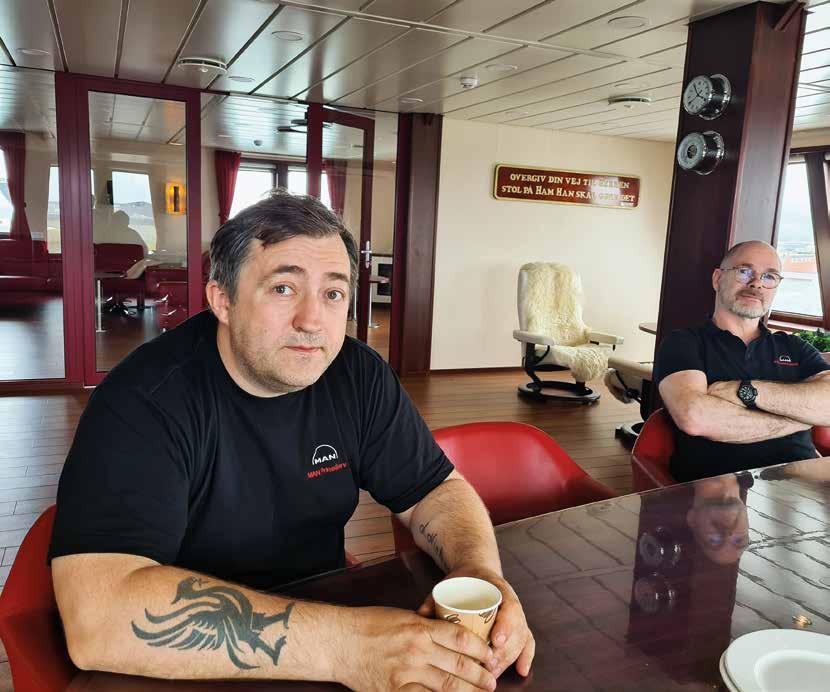 ”Et skib er et skib. Det her er så stadig ret nyt og med masser af mekanik. Jeg har arbejdet mig op fra de mindre fartøjer og til dette skib. I dag kan man lettere få hjælp end tidligere blandt andet pga. onlinesystemerne. Nogle er direkte koblet på til leverandører. Der er masser af alarmer på de væsentlige dele – fx det enormt vigtige kølingssystem, hovedmotor osv. Rigtig meget skal fungere samtidig, og det er vores ansvar, at det virker.”
