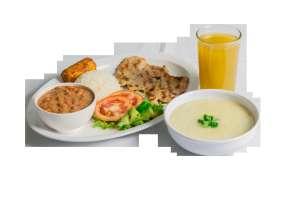 120 gr. Carne y pollo, piña glaseada, papas fritas SOPA SEGUNDO JUGO NATURAL