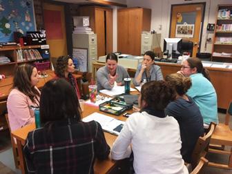 Teachers, teaching aides, teaching assistants, and administrators come from across the district to work together to learn about specific topics related to curriculum, standards, technology, assessments, and other areas.