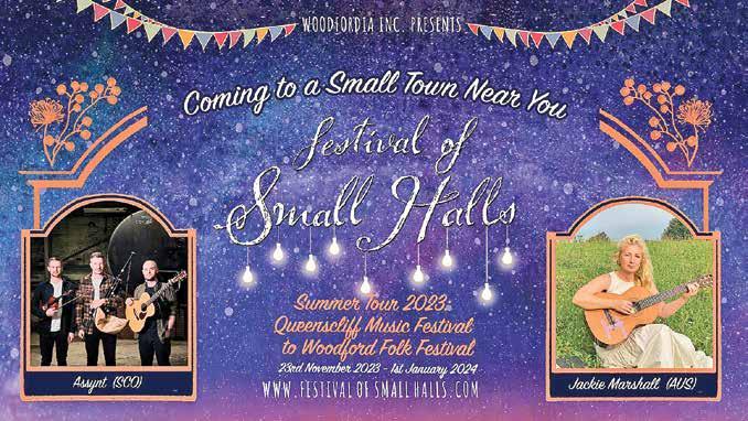 Produced by Woodfordia Inc, the team behind the worldrenowned Woodford Folk Festival, the Festival of Small Halls is Australia’s largest regional music tour.