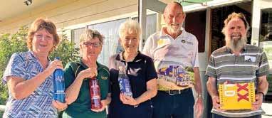 Prize winners at Toogoolawah Golf Club on September 2 Chrissie Black (ladies winner), Enid Faulkner (Ladies runner-up), Chris Stevens (NTP), Bob Marshall (men’s runner-up and NTP), Brian Loveland (men’s winner and NTP). Absent: Alan Black (NTP).
