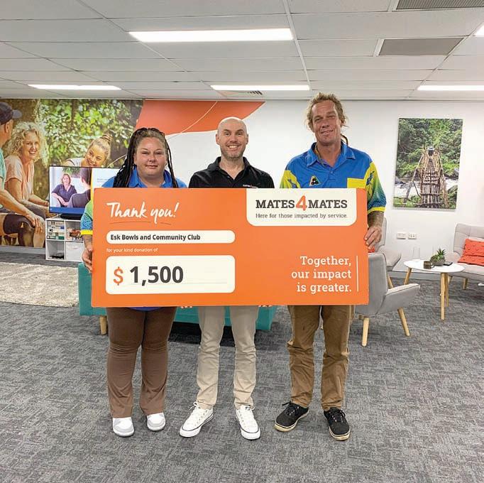 THE Esk Bowls Club raised $1500 for veteran charity Mates4mates at on Remembrance Day last year, and on Wednesday, March 19, the two groups met to hand over the off cheque.