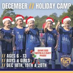 The camp will run from Wednesday, December 18, to Friday, December 20, with sessions held from 8:30–11:30 am (arrive by 8:15 am) at Harris Avenue Sports Complex.