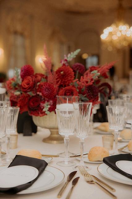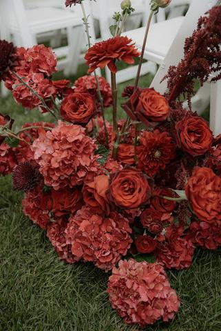 Brittany and Shaquille’s wedding at Rose Cliff embraced a dramatic, moody palette of deep burgundy and black with striking gold accents It was a bold departure from the coastal-inspired designs we created this season, offering a rich, sophisticated feel The contrast and depth made it a really fun project to bring to life, resulting in a celebration that was both unexpected and unforgettable Florals by Sayles Livingston Design with photos by Move Mountains Co