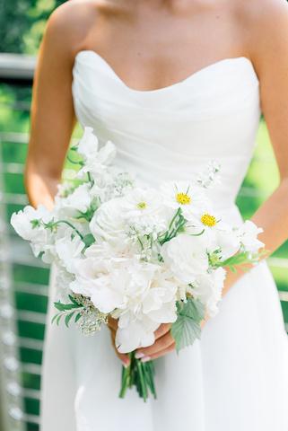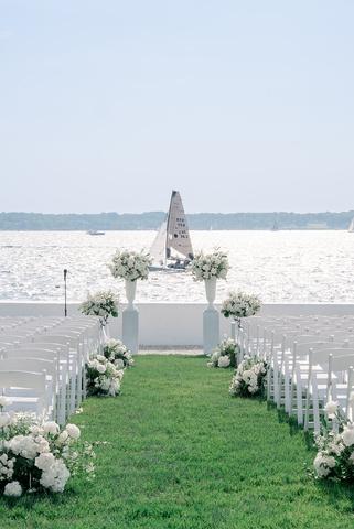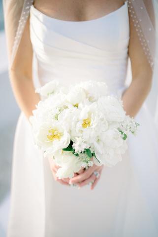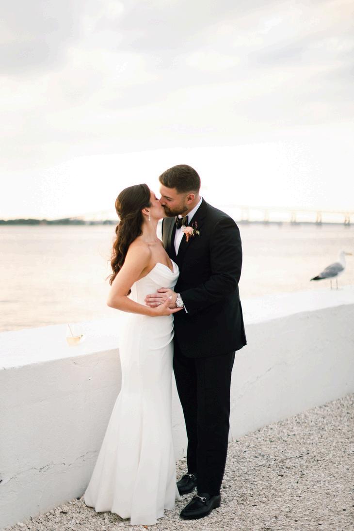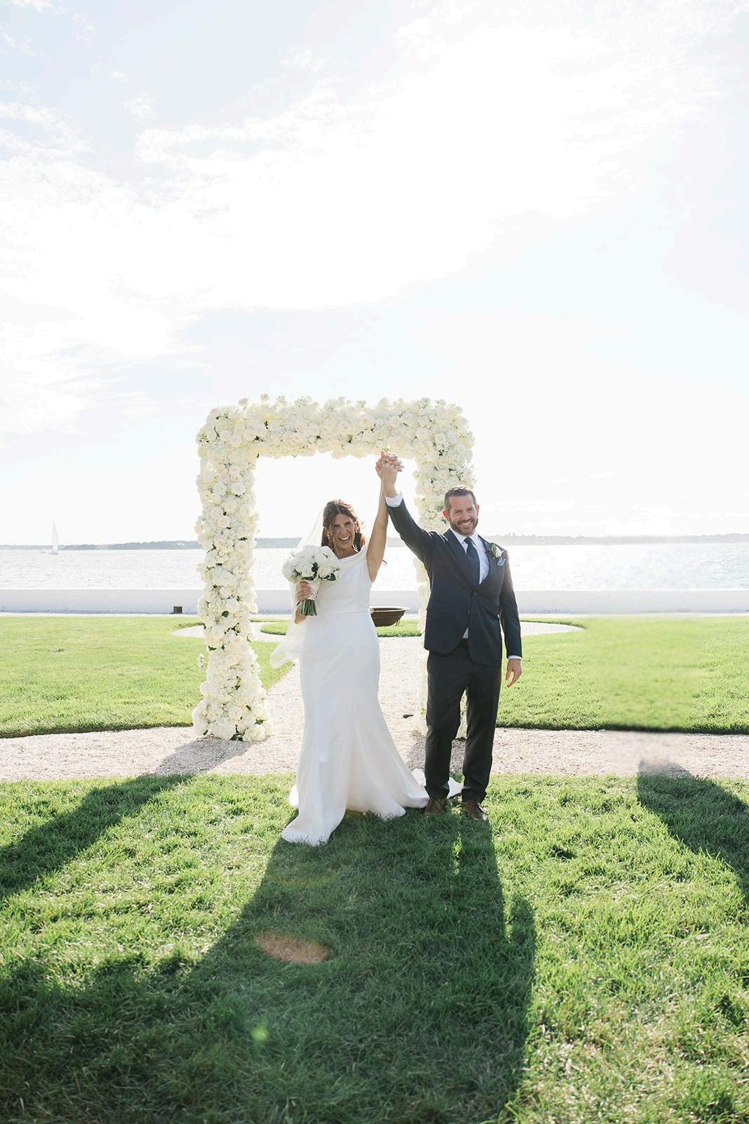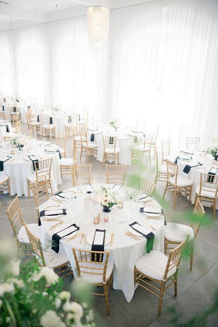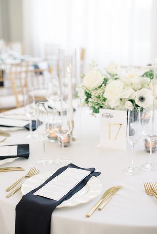 Emily and Jaret’s wedding at Belle Mer embraced a timeless black-and-white palette accented with warm gold details and subtle pops of yellow woven into the floral design. Clean lines and modern elements kept the look refined and intentional, resulting in a celebration that felt elegant, polished, and effortlessly classic Planning by Nicole Gabriella Events, florals by Floral Fixation, and photos by Rachel Girouard Photography