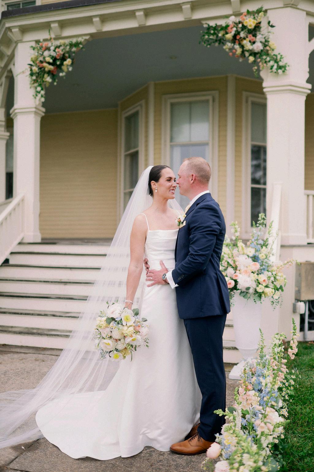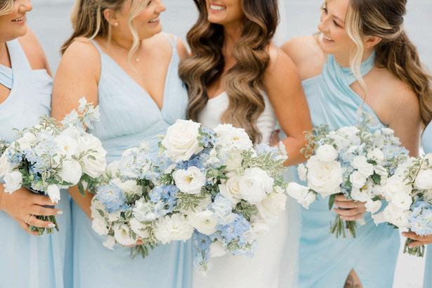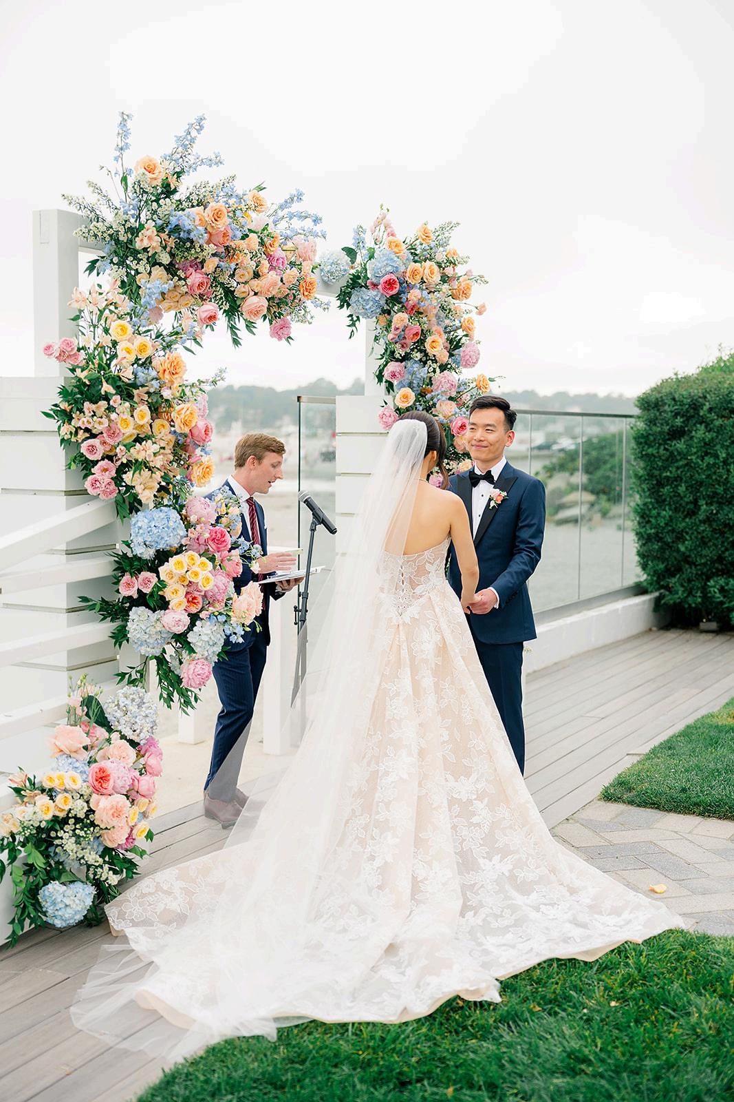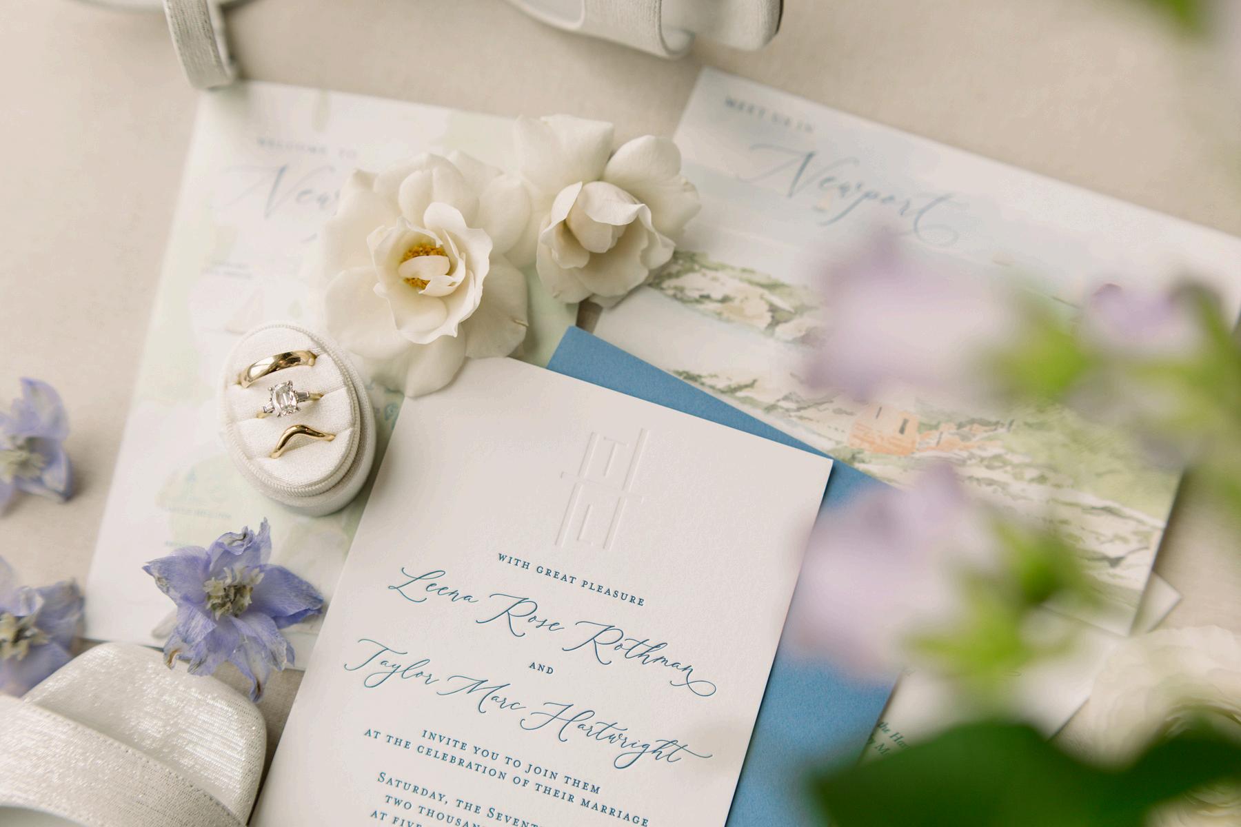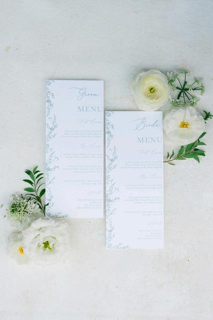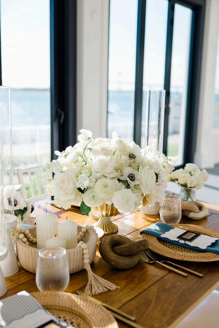Taylor and Terrence’s wedding captured a quintessential New England summer through a palette of soft blues and whites layered with coastal textures. Rattan accents and abundant hydrangeas set the tone, while custom hydrangea-wrapped menus and subtle pearl details added a touch of coastal glam The overall design felt chic, fresh, and didn’t miss a single detail Florals by Floral Fixation and photos by Coli Michael Photography