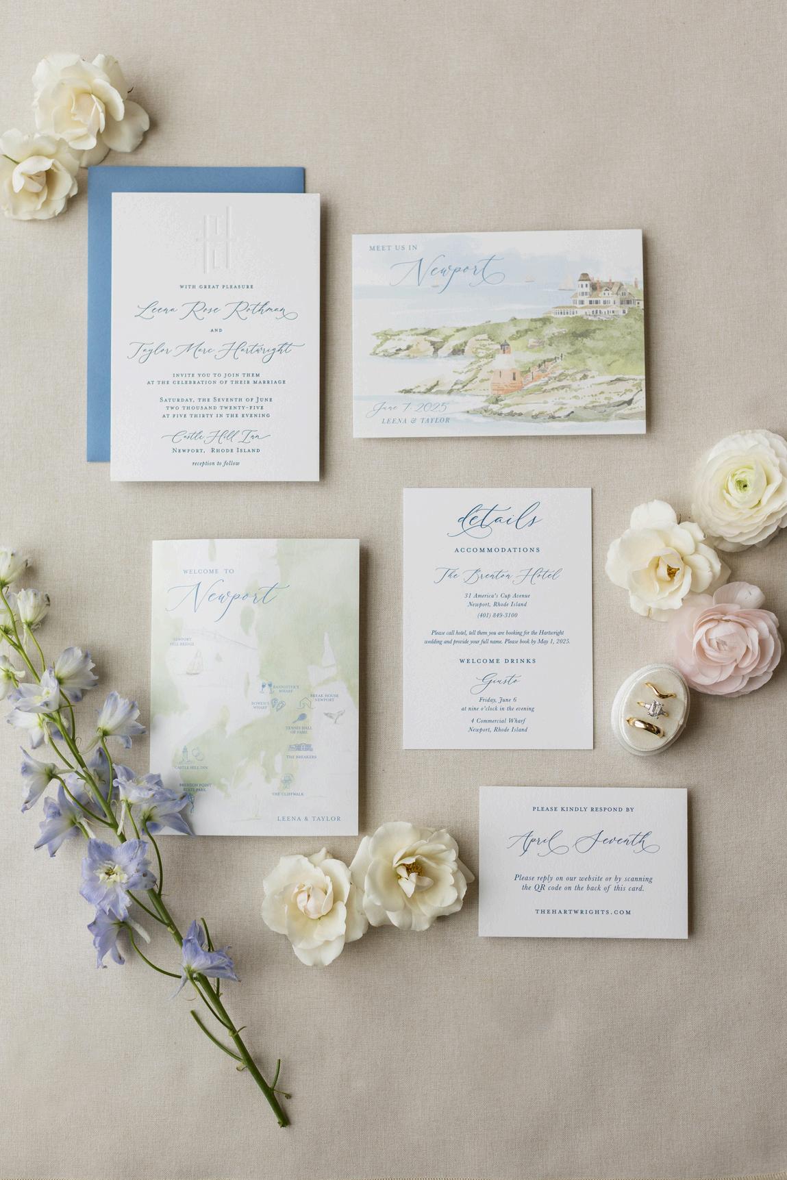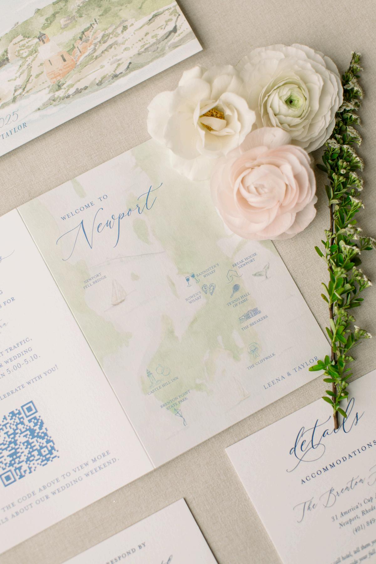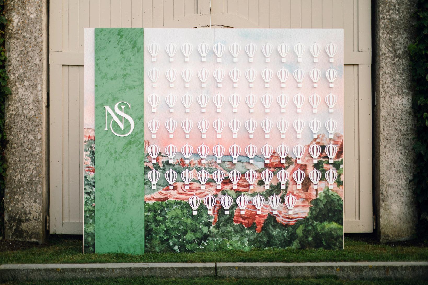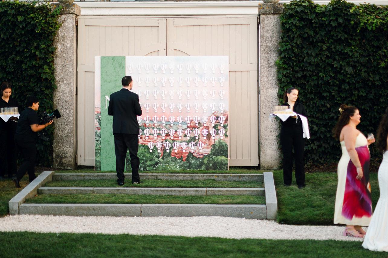 Sam and Nico’s wedding was one of our most unique designs of the year, reimagining Newport in a way that felt entirely their own Their escort display became a true focal point, inspired by hot air balloons and featuring a custom watercolor scene from a place meaningful to them by Pressed Fig Paperie, paired with acrylic balloon elements for each guest The result was an organic, elevated design that felt imaginative and personal Planning by Madden Made Events, with florals by the Traveling Flower Ladies and photos by Kearsten Taylor Photography