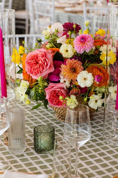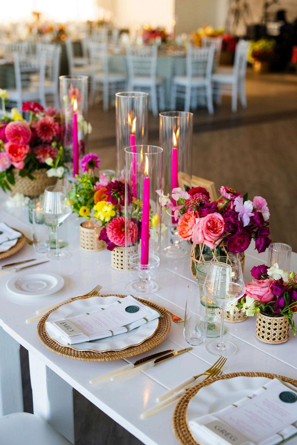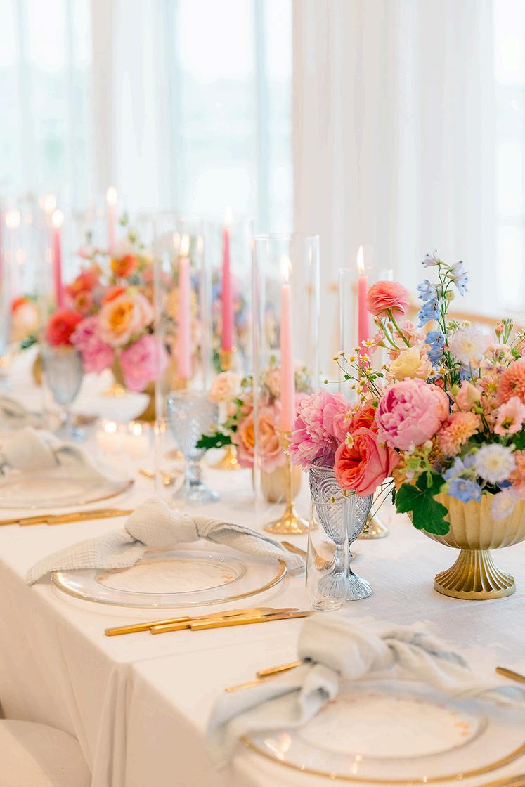 Emily and Greg’s wedding embraced a bold, joyful approach to color, making it one of our most vibrant designs of the year A rich green foundation anchored the palette, allowing a rainbow of hues to shine through the florals, flooring, and bridesmaids’ dresses As big music lovers, the couple named each table after a favorite songs The result was a playful, high-energy celebration that balanced personality with thoughtful function Planned by Sweet Deets Events, with florals by Stoneblossom and photos by M Studios
