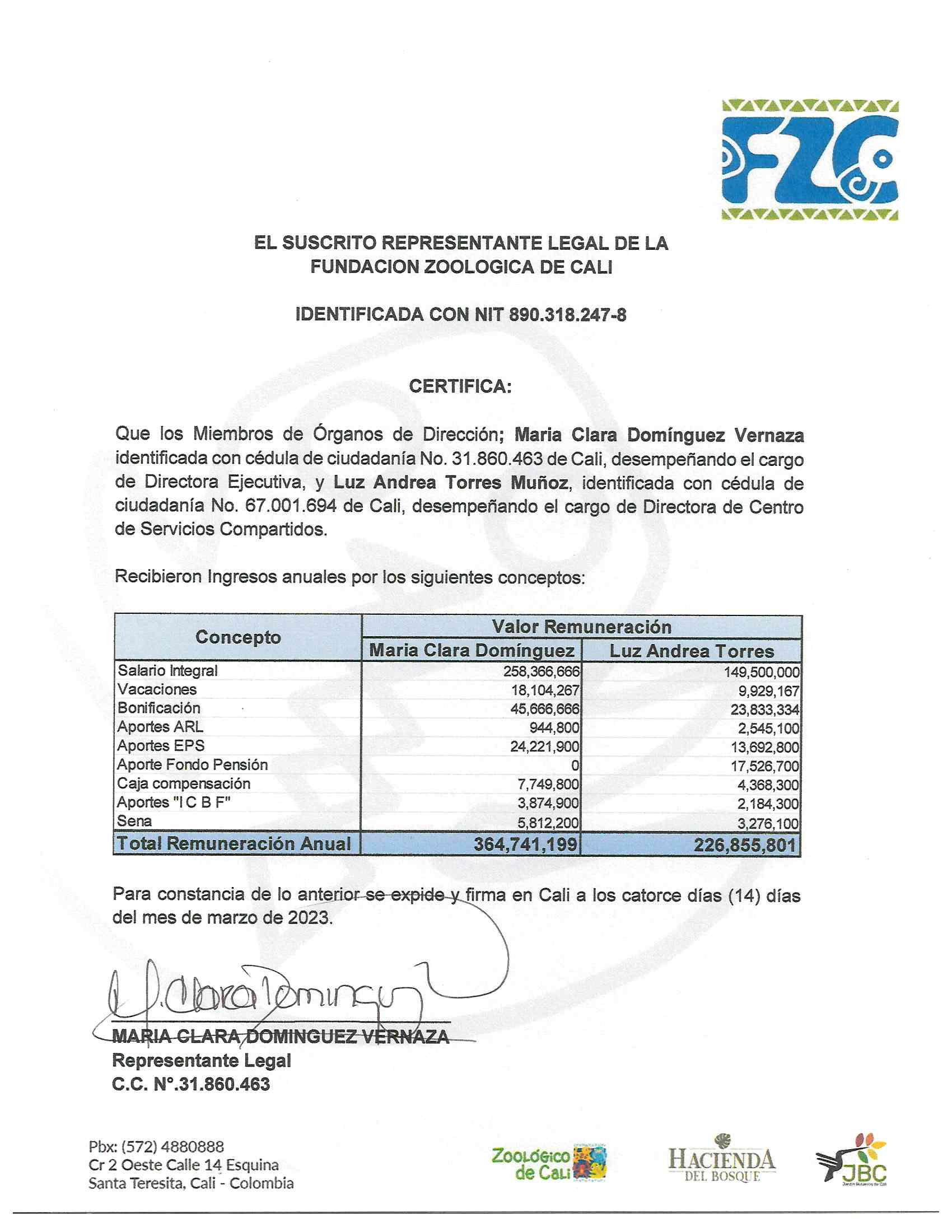 CERTIFICACION REMUNERACION DIRECTIVOS FZC